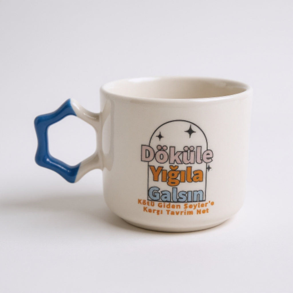Döküle Yığıla Galsın Seramik Kupa 195 cc  Yuvarlak Kulp