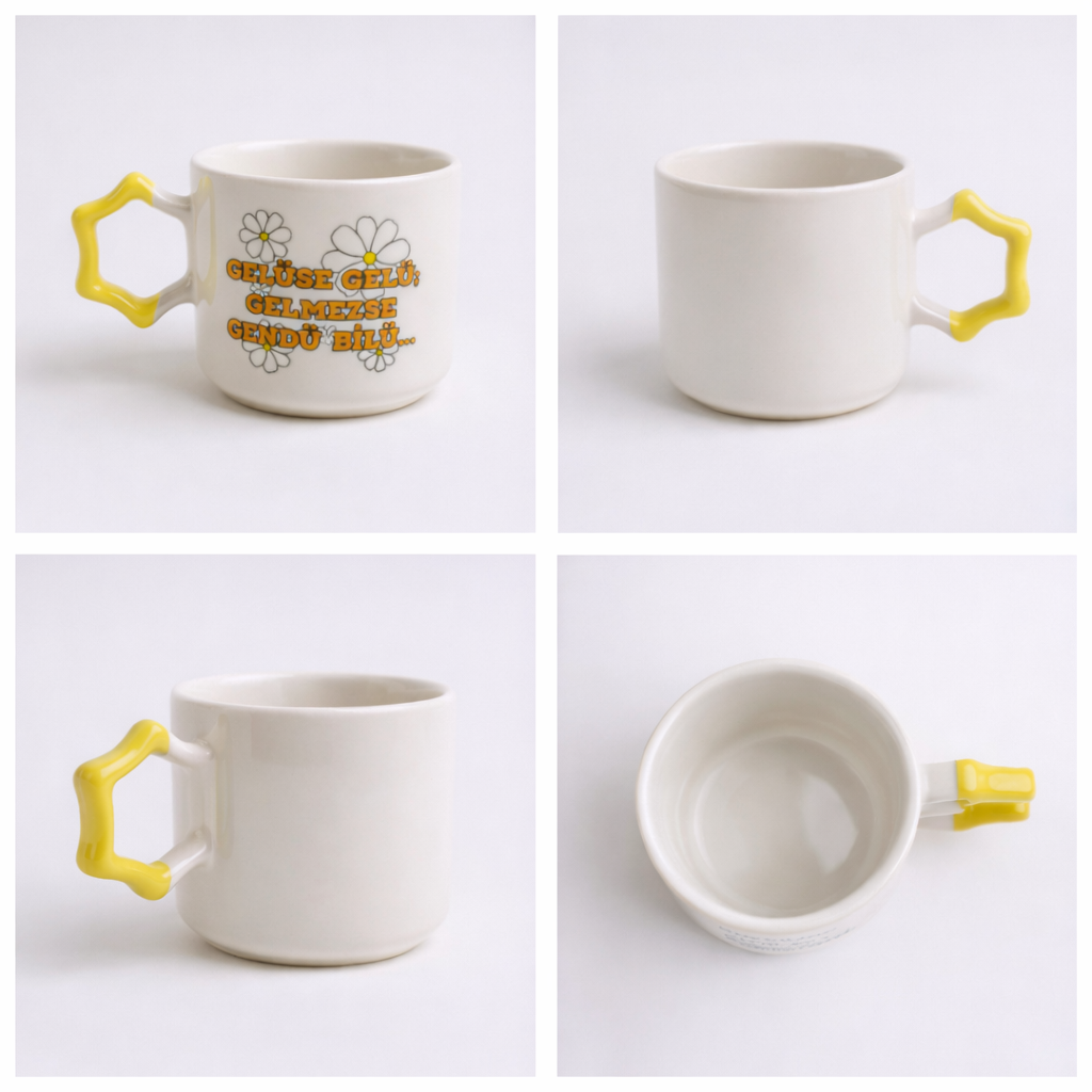 Gelüse Gelü Gelmezse Gendü Bilü Seramik Kupa 195 cc  Altıgen Kulp