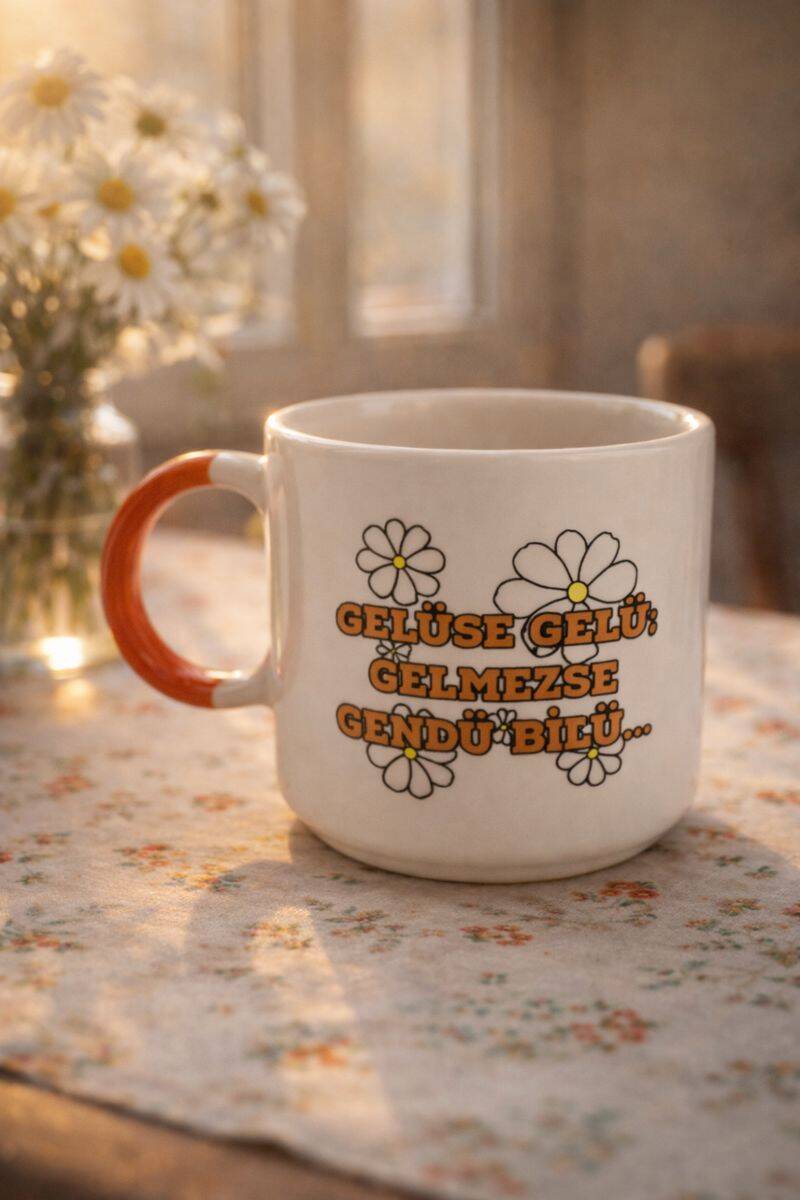 Gelüse Gelü Gelmezse Gendü Bilü Seramik Kupa 195 cc  Yuvarlak Kulp